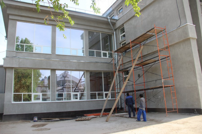 В настоящее время ремонтные работы ведутся на части здания со стороны Мирного переулка.