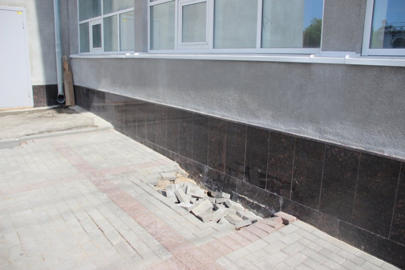 Самые большие из них видны на стене на углу Чапаева и проспекта Кирова. Несколько мелких трещин тянутся рядом с оконными блоками. В одном месте около стены цирка провалилась плитка. Провал не огорожен. Ремонтными работами в прошлом году занималось ООО НППФ «Стройреставрация».