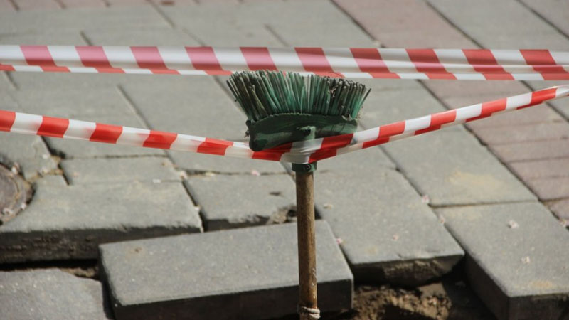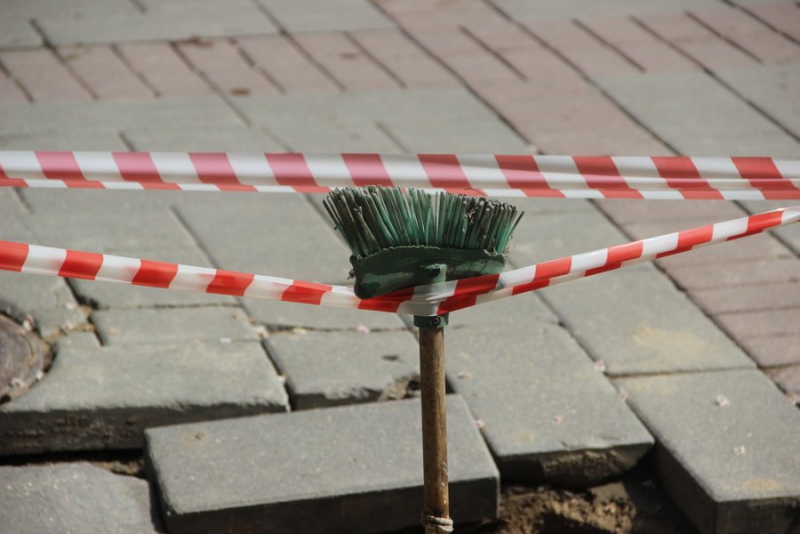 На проспекте Кирова над провалом создали инсталляцию из щетки, ленты и трубы