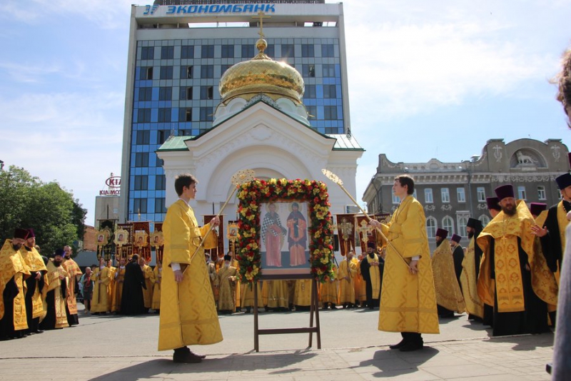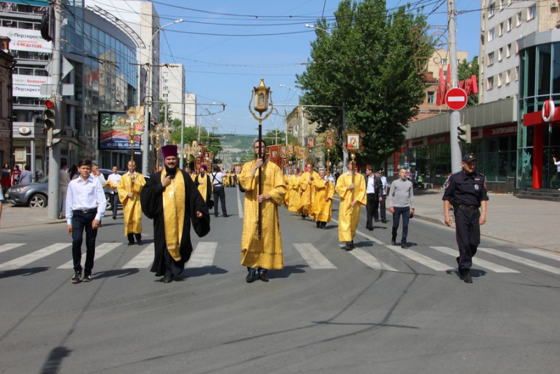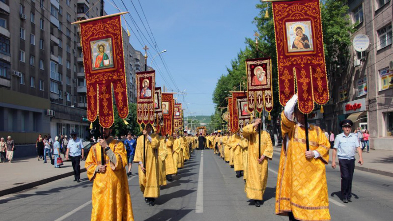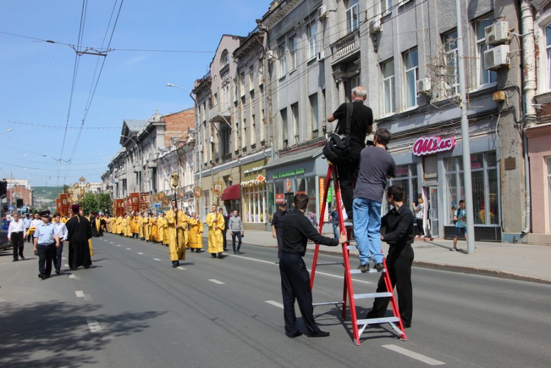 Сегодня в Саратове прошел крестный ход, приурочен к празднованию Дня славянской письменности. Участники прошли по улице Московской от храма Кирилла и Мефодия на территории СГУ до поклонного креста возле Александро-Невской часовни на Театральной площади.