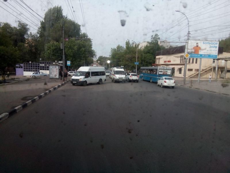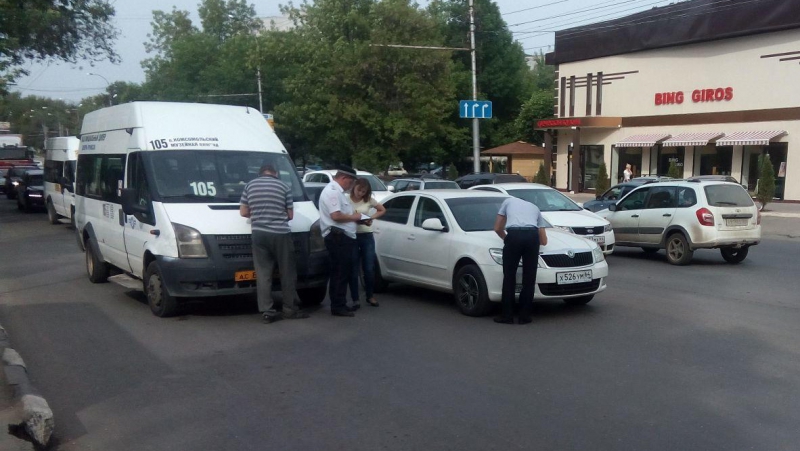 Маршрутка, судя по всему, отъезжала от автобусной остановки, когда к ней притерлась легковушка, ехавшая по второй полосе. Столкновение было несильным. По предварительным данным, обошлось без пострадавших.
