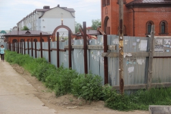 По словам мужчины, сразу за забором из металлопрофиля около храма наблюдается высокая трава. Ею же покрыт пустырь со стороны улицы Менякина и газон со стороны Муленкова.