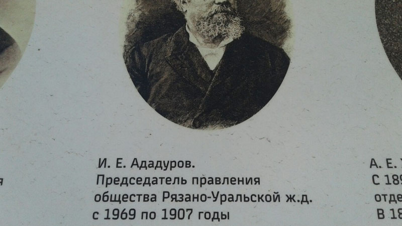 Речь идет о председателе Правления Рязано-Уральской железной дороги Ивана Ададурова. Из надписи на щите следует, что он трудился в этой должности с 1969 по 1907 год, что, разумеется, исторически невозможно. Мужчина сфотографировал несообразность и выложил снимки в сеть.