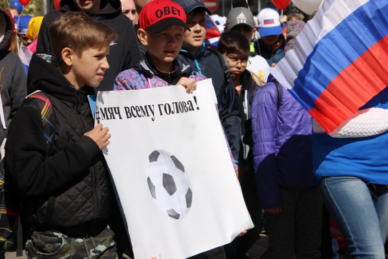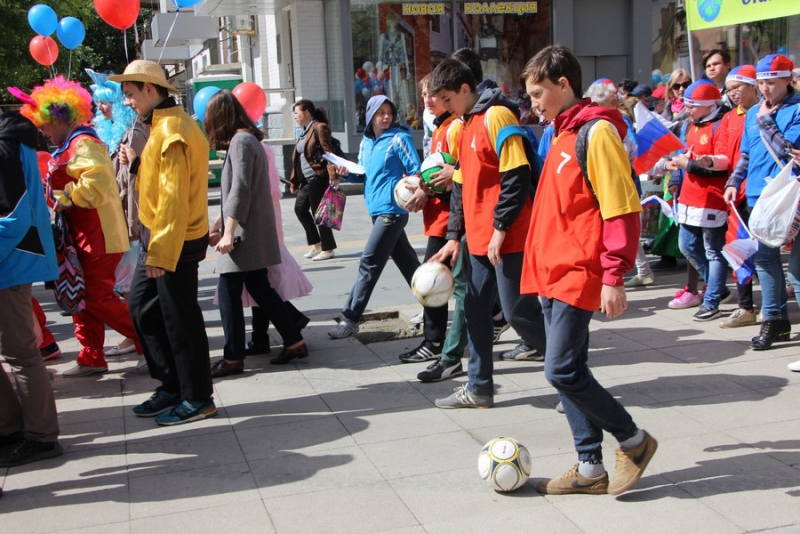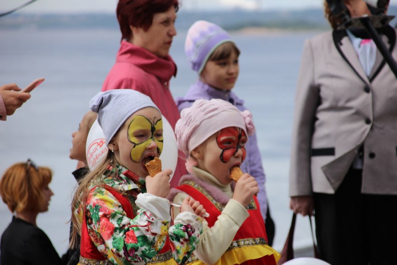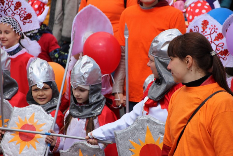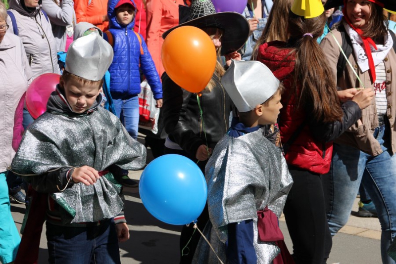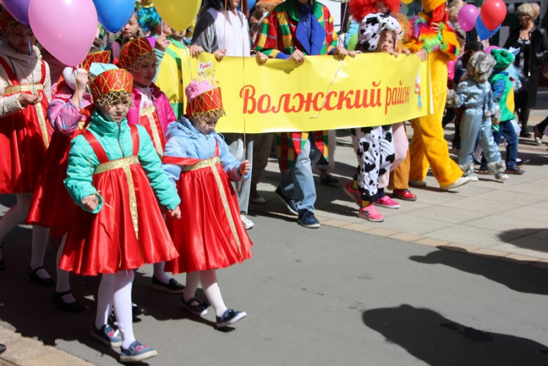 Большинство детей были одеты в яркие костюмы сказочных героев: Мальвин, принцесс, бабочек, лисичками, зайчиками, мальчишки были рыцарями, клоунами, мушкетерами, много детей примерили русские народные костюмы, которые одевались на теплые вещи. Нашлись и те, кто надел наряды футболистов. Мальчишки шли с мячами, громко дудя в дудки и хлопая в хлопушки. Они попытались создать настоящую футбольную атмосферу. В руках у детей были воздушные шары, которые они отпускали в небо на набережной, а сильный ветер относил их в сторону Энгельса.