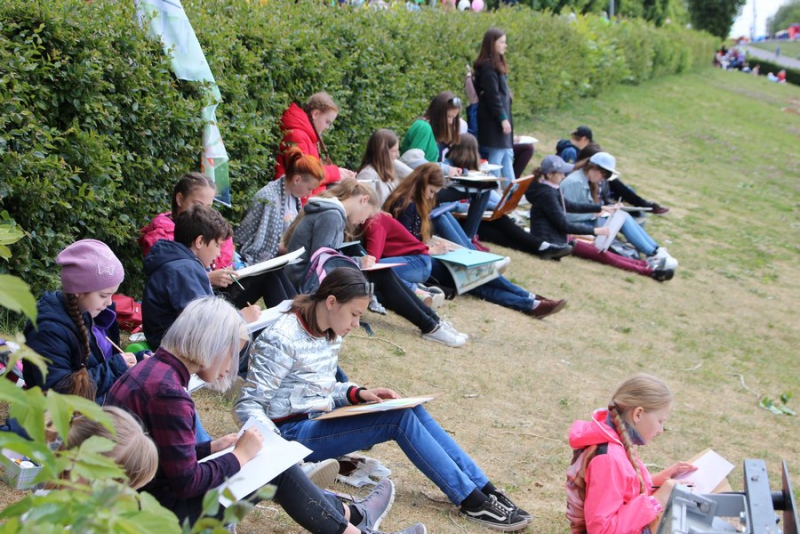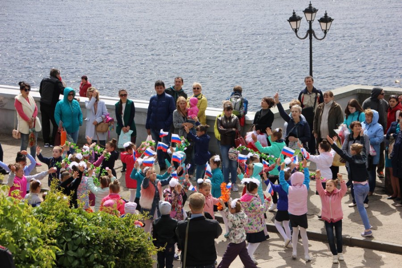 Там до 13.00 будут размещены интерактивные площади с выставками, пленэрами, спортивными и творческими выступлениями. Для гостей праздника на площадке Центрального спуска выступают детские городские коллективы.