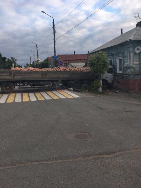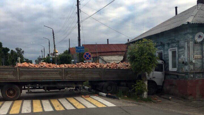 «КамАЗ» с кирпичами врезался в дом