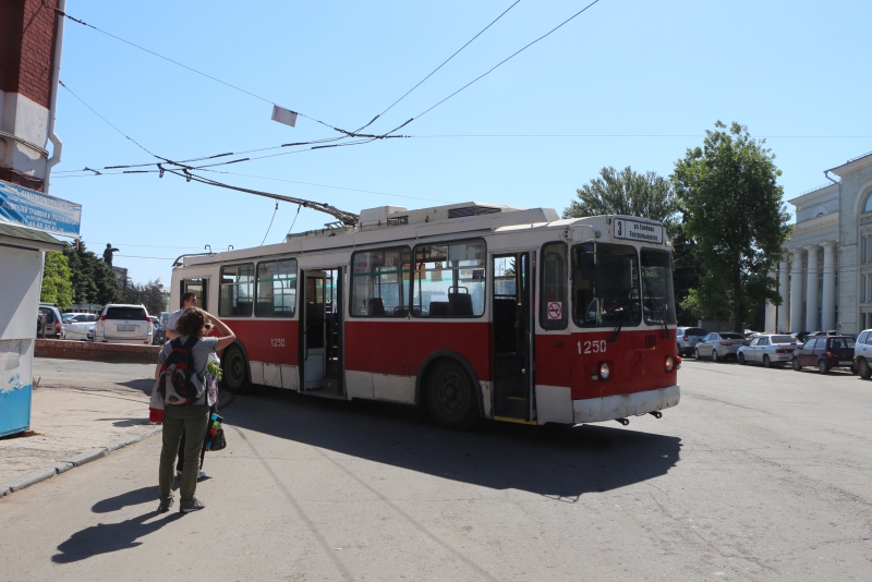 Корреспондент «4В» отправился в поездку на троллейбусе №3, следующим от Театральной площади до улицы Грибова. Пассажиров в транспорте оказалось немного. Большая часть из них были пенсионного возраста и расплачивались проездными билетами.