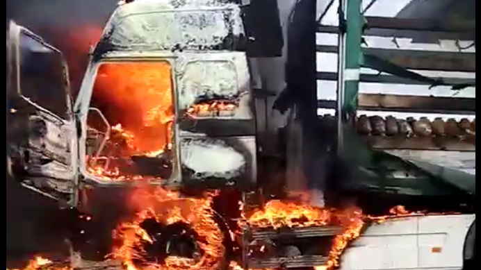 Автор видео предполагает, что вскоре на месте возгорания образуется серьезный транспортный затор.