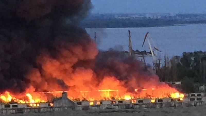 В Заводском районе на территории заброшенного элеватора наблюдается сильное возгорание на улице Пензенской. Столб дыма виден со всех концов района.