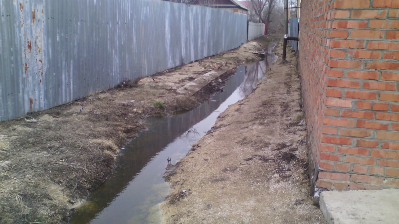 Грунтовые воды, которые регулярно откачивают из подвалов двух- и трехэтажек на Федина, попадают в вырытую неподалеку канаву, проходящую мимо домов на улице Крупской. Пруд, в который она уходит, не чищен и сильно заилен, поэтому стоки растекаются по частному сектору и затопляют дома. Эта же ситуация, по словам жителей, каждый год наблюдается весной, когда тает снег. Чтобы хоть как-то отвести воду от жилья, люди своими силами пытаются чистить канаву.
