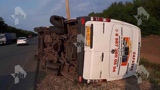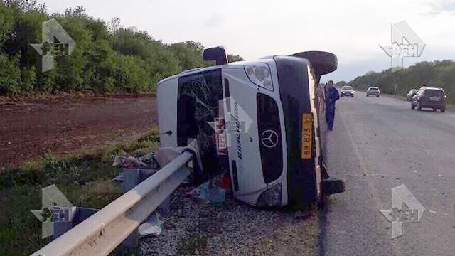 Обстоятельства ДТП уточняются, но сообщается о том, что легковушка выехала на полосу встречного движения, где врезалась в проезжавший микроавтобус, тот перевернулся, сама же иномарка вылетела с трассы.
