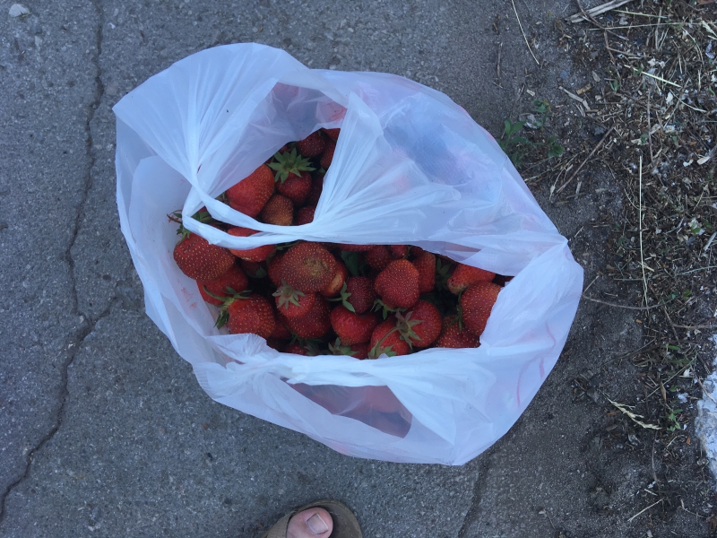 На одной из площадок организаторы установили конструкцию, на которой выставили несколько десятков пластиковых стаканчиков с ягодами. «Раздавать будем после пяти», - отгоняли они не в меру любопытных горожан.