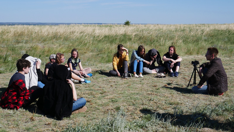 Во второй день работы телевизионной школы участники, поделенные на три команды, получили «редакционные» задания. Ребятам предстояло подготовить научно-популярные сюжеты о геологических особенностях Можжевелового и Безымянного оврагов, о достопримечательностях села Белогорского, о культурно-историческом значении села Каменки. В съемке и монтаже сюжетов начинающим медийщикам помогали тьюторы — студенты направления «Телевидение» кафедры «Медиакоммуникации» СГТУ.