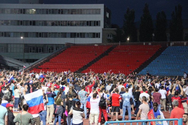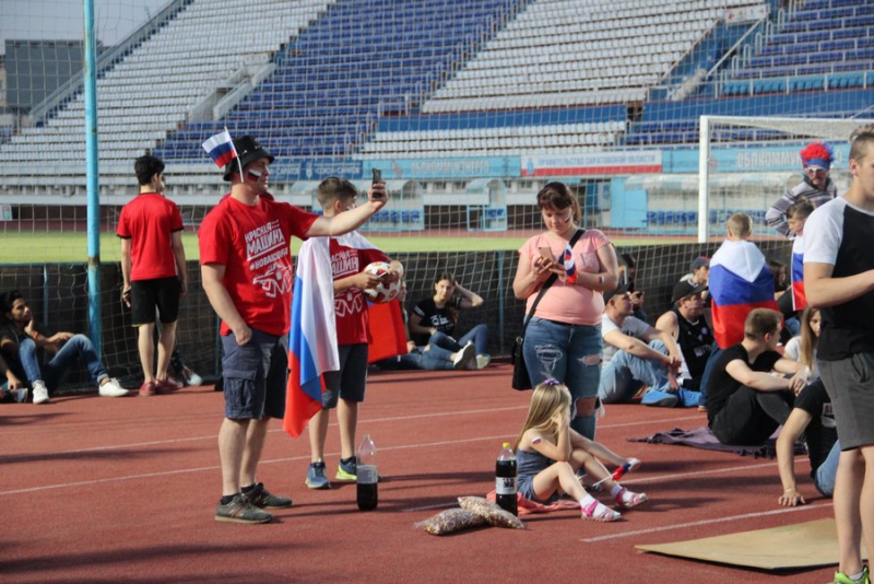 Сегодня на стадионе «Локомотив» Саратова собралось несколько сотен болельщиков, чтобы посмотреть на игру сборной России с египтянами на чемпионате мира по футболу. Большинство из них верит в победу нашей команды.