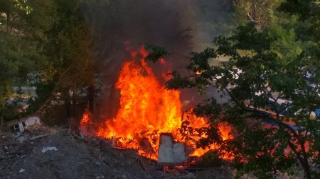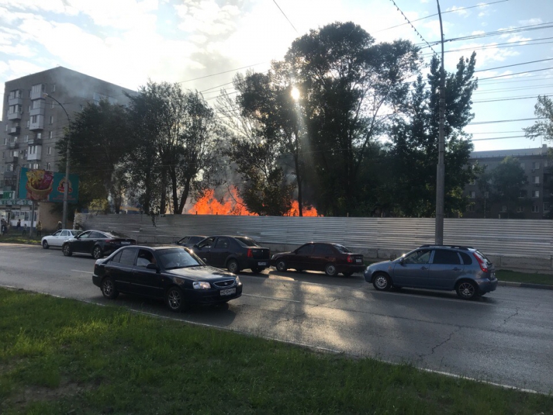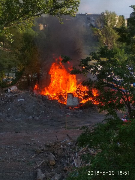 По предварительным данным, вчера вечером на проспекте Энтузиастов, 44 начался пожар. Очевидцы запечатлели горящий мусор на площадке, огороженной забором. По их словам, его там скопилось в больших количествах. Якобы он остался от снесенного барака. Огонь поднимался на несколько метров вверх.