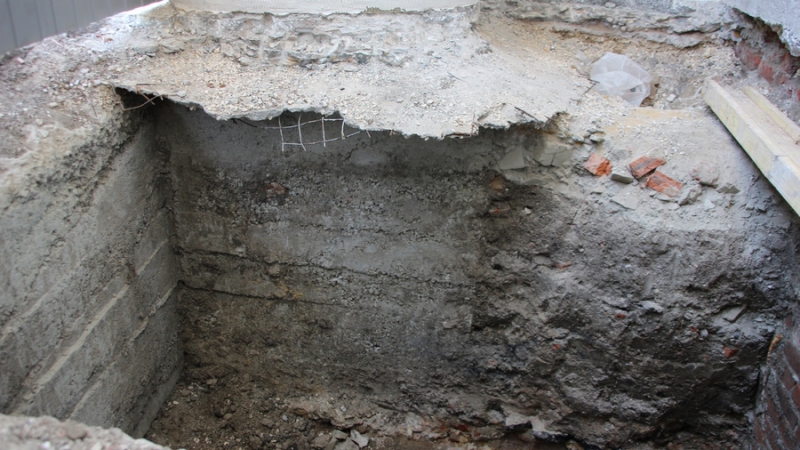 Две недели назад рабочие начали копать с трех сторон от культурного учреждения, чтобы достигнуть фундамента и проверить его состояние. Сейчас рабочие докопались до части первоначального фундамента, которому 150 лет. Об этом корреспонденту «Четвертой Власти» рассказала инженер-конструктор Светлана Твердохлебова.