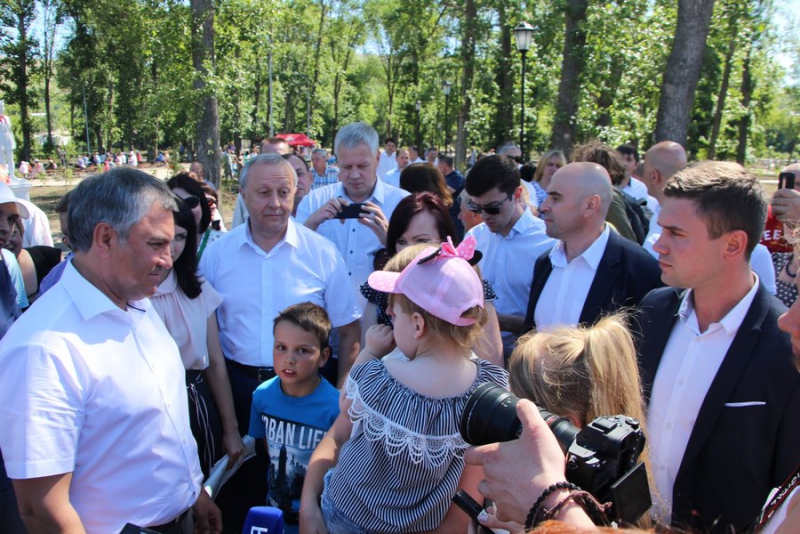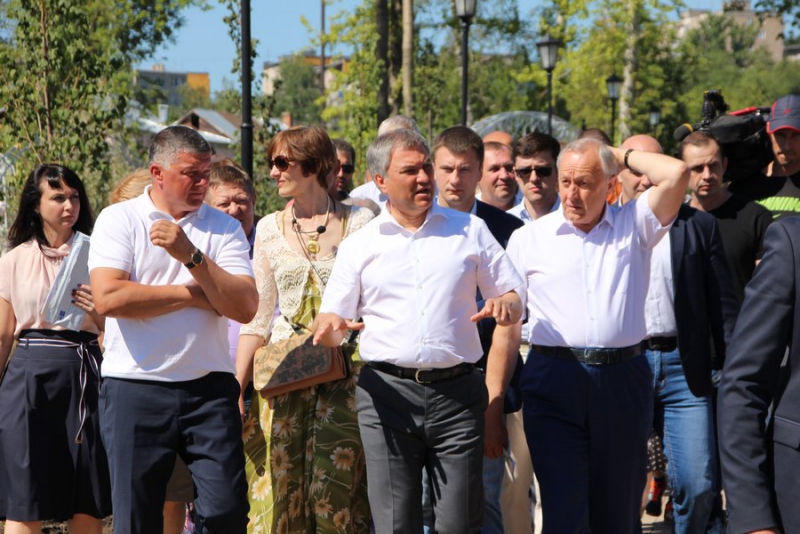 Вячеслав Володин с губернатором обошли парк, пообщались с людьми. Зеленая зона была заполнена семьями с детьми, выстраивались очереди к аттракционам, большей популярностью у горожан пользуются фонтаны. Парк разбили на несколько зон: историческая, спортивная, детская зоны, а также зона ремесленников, где умельцы показывают свои изделия из бисера, кожи и глины.