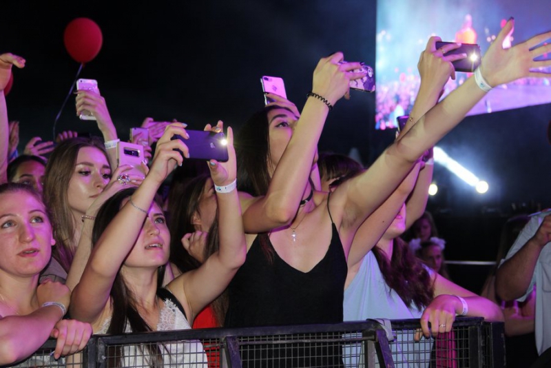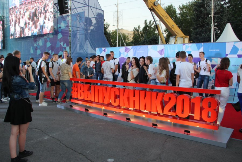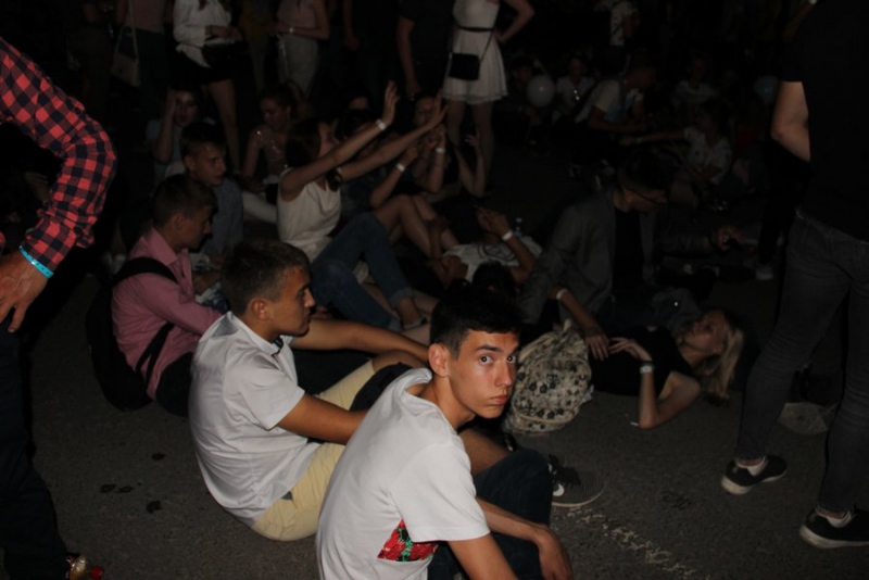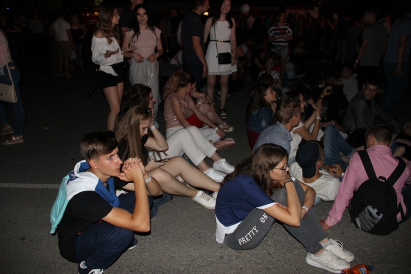Напомним, праздник начался в 22.00 по местному времени с фейрверка, салютом же праздник и закончится. Молодежь общается на площади, фотографируется возле стенда, на котором написано «Выпускник-2018», ест мороженое, танцует. В толпе ходя ряженые, в том числе на ходулях.