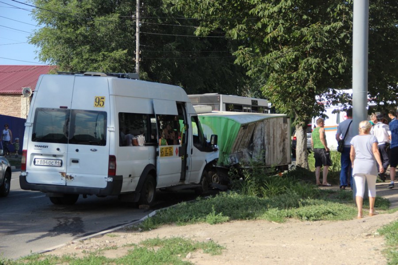 Около часа назад в Волжском районе Саратова микроавтобус маршрута №95 столкнулся с грузовым автомобилем «Хендэ Портер». Авария произошла на Соколовой горе, возле дома №128 по улице Мясницкой.
