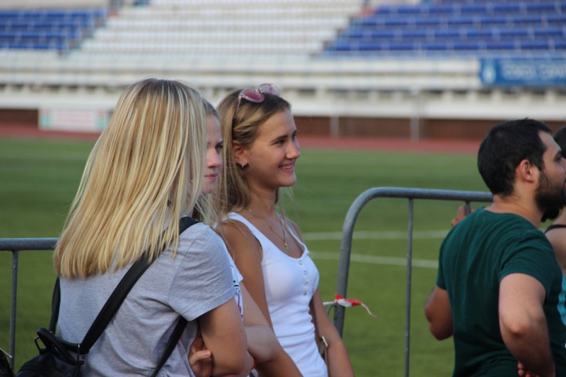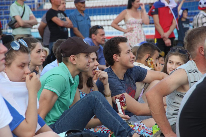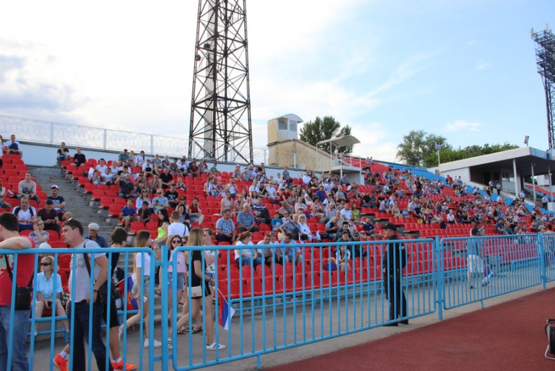 На стадион пришло несколько сотен болельщиков, которые на входе прошли досмотр у полицейских. Сегодня не так много зрителей, как на предыдущие матчи. Видимо, это связано с тем, что не все смогли отпроситься с работы. Возможно, свою роль сыграла жаркая погода.