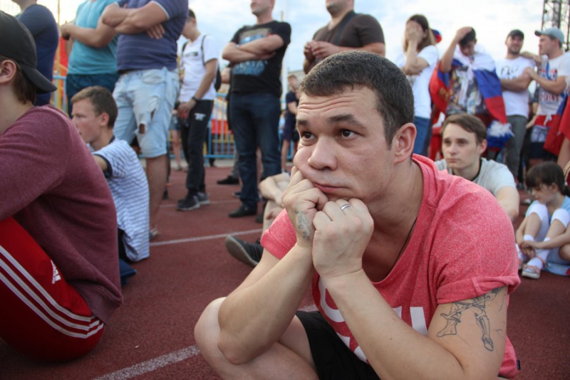 Штрафной гол после ошибки Газинского в ворота россиян на 10 минуте забил уругваец Луис Суарес. После этого зрители схватились за головы. После этого несколько моментов вдохнули в болельщиков надежду, и они начали выкрикивать «Россия, Россия!». Настроение серьезно подпортил второй гол в наши ворота от Диего Лашальта. Он пробил с дальней дистанции, мяч рикошетом от Дениса Черышева залетел в угол. Счет стал 2:0 не в нашу пользу.
