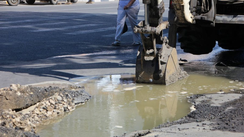 Рабочие начали борьбу с бегущими из-под асфальта ручьями
