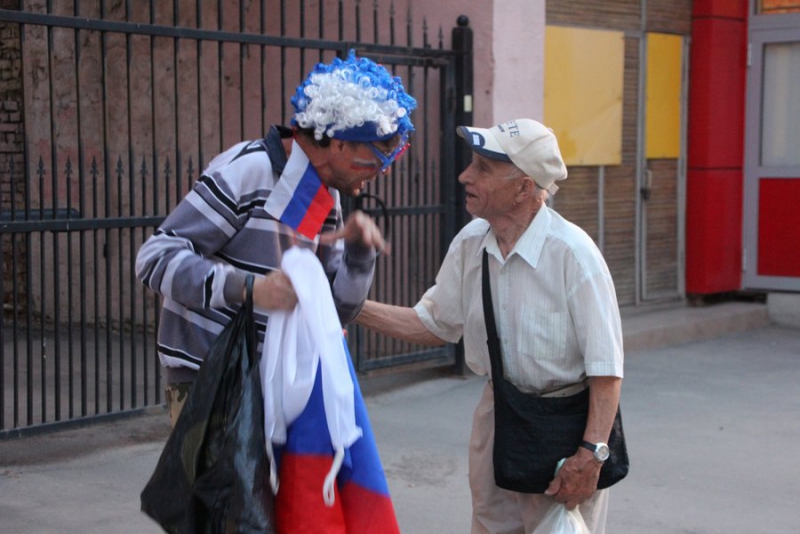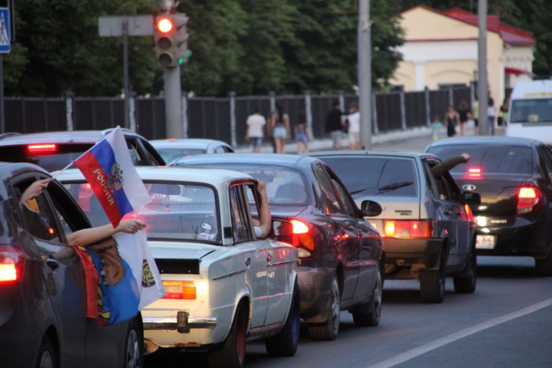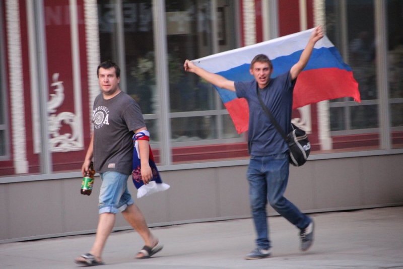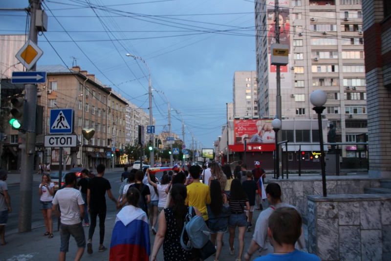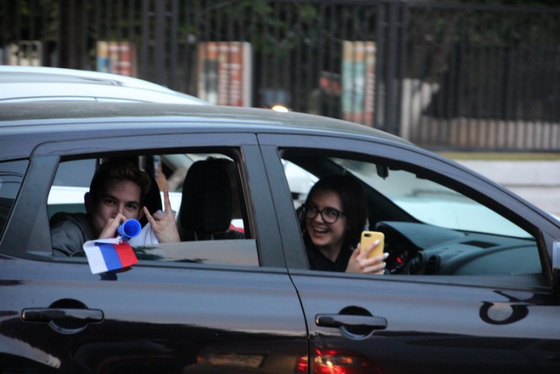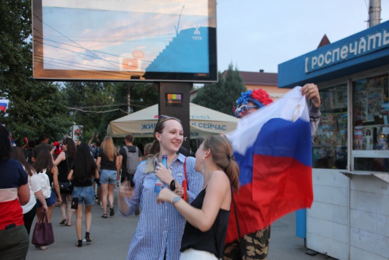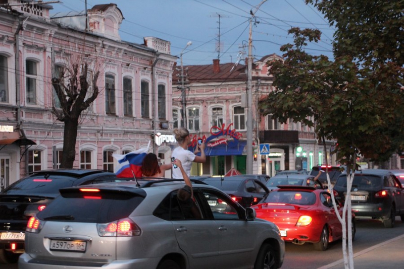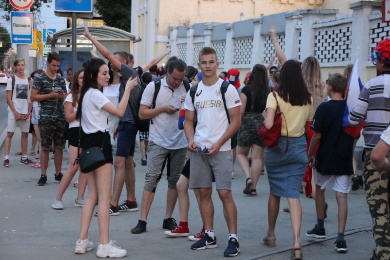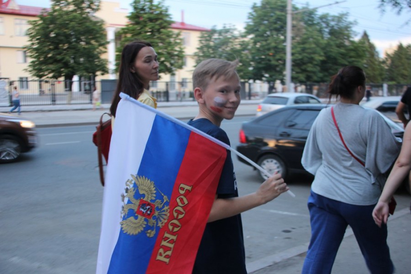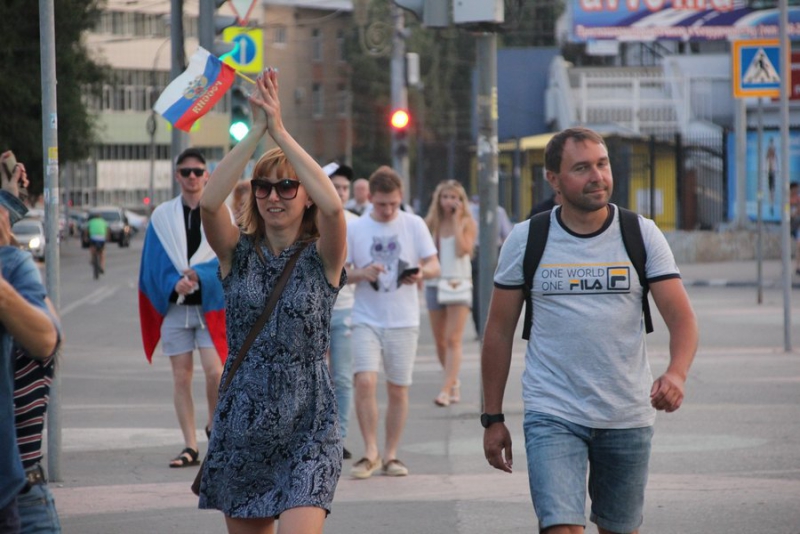 Корреспондент «Четвертой Власти» сообщает, что толпы идут от стадиона «Локомотив», где проходила трансляция матча, по Астраханской, Московской, Чапаева. Люди поют «Катюшу», кричат футбольные речевки: «Россия вперед!», «Игорь (Акинфеев) молодец!» В ответ им сигналят автомобилисты, в некоторых машинах флаги.