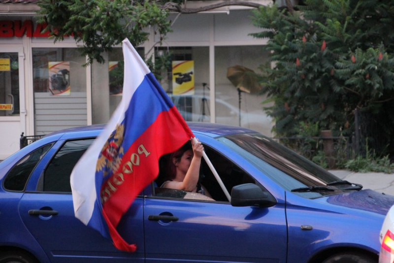 По словам корреспондента, люди идут небольшими группами, мирно, спокойно, не нарушая общественного порядка. Каких-то массовых гуляний в центре города не ожидается, видимо, многие не верили в победу россиян.