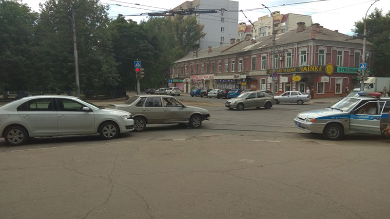По их данным, движение остановилось в 13.50 из-за столкновения двух автомобилей на трамвайных путях неподалеку от перекрестка улиц Вавилова и Астраханской. Судя по опубликованной фотографии очевидцев, столкнулись «Шкода» и «ВАЗ-2115». На месте работали сотрудники полиции.