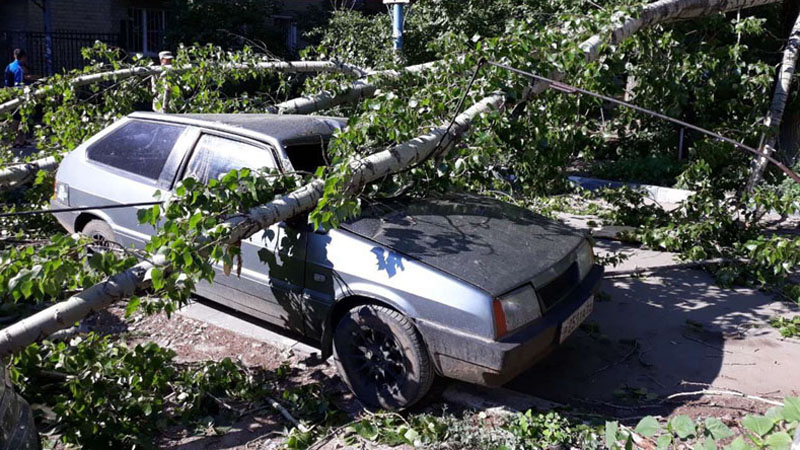 В Саратове упавшее дерево придавило 3 автомобиля