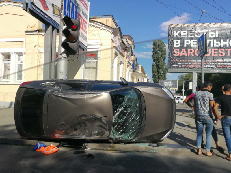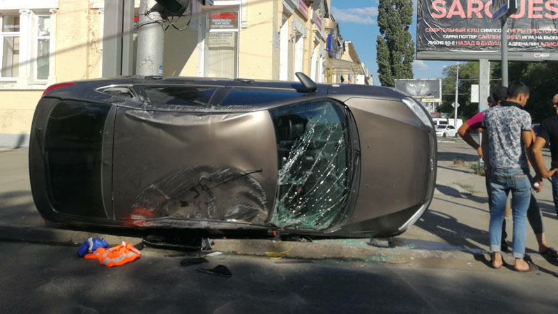 Легковушка вылетела на тротуар и перевернулась после ДТП