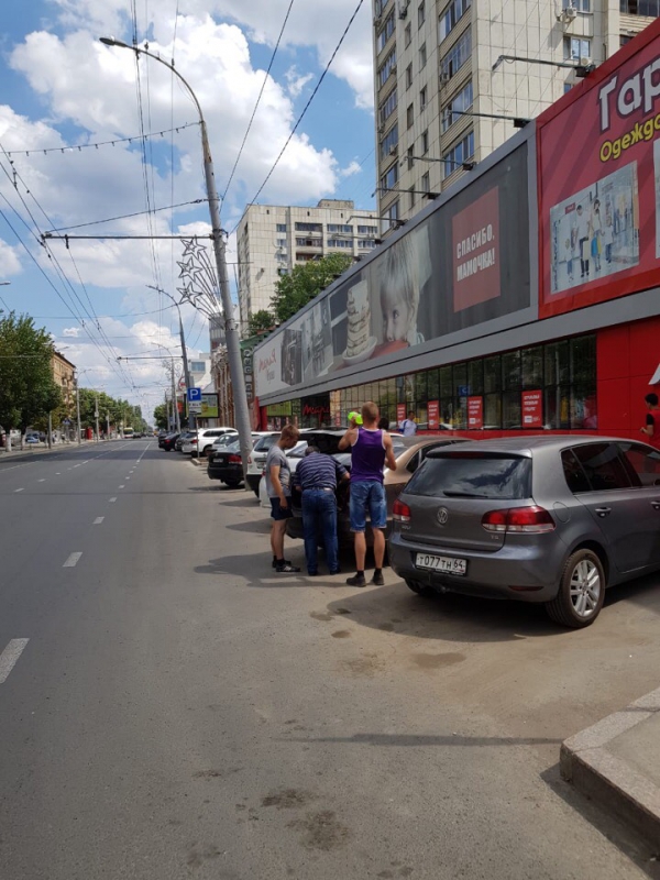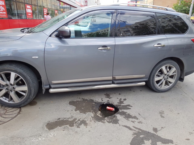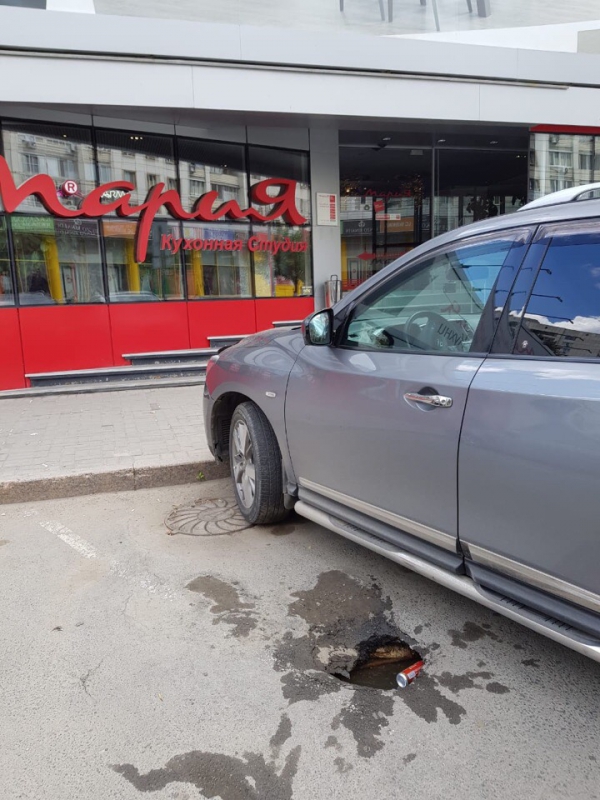 На парковке в центре Саратова водитель провалился в яму по колено