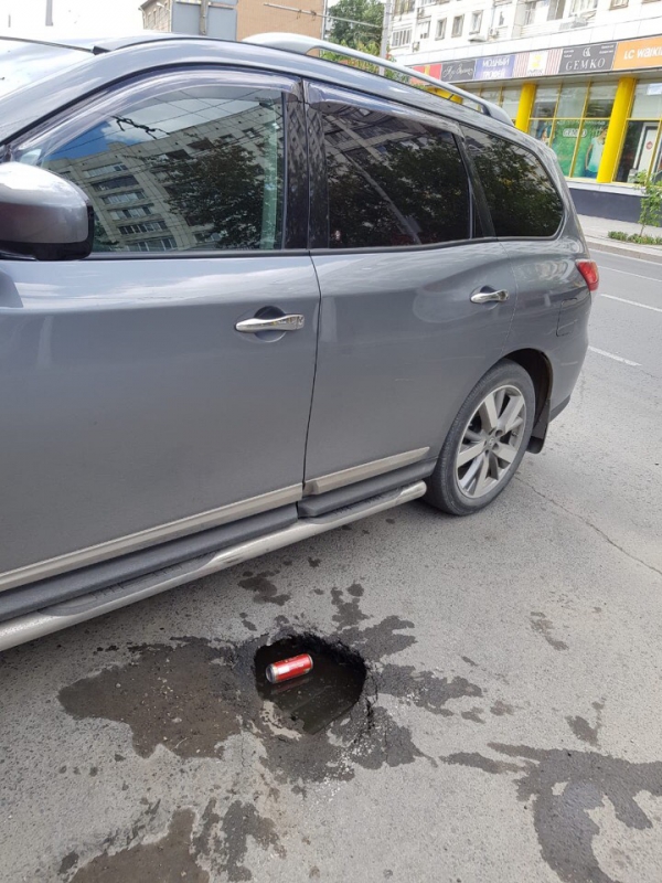 По предварительным сведениям, водитель иномарки припарковался на улице Московской (между Рахова и Чапаева), но при этом не заметил небольшую дыру в асфальте. При выходе его нога провалилась в яму с водой.