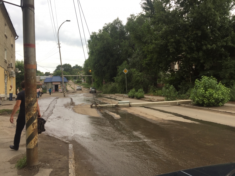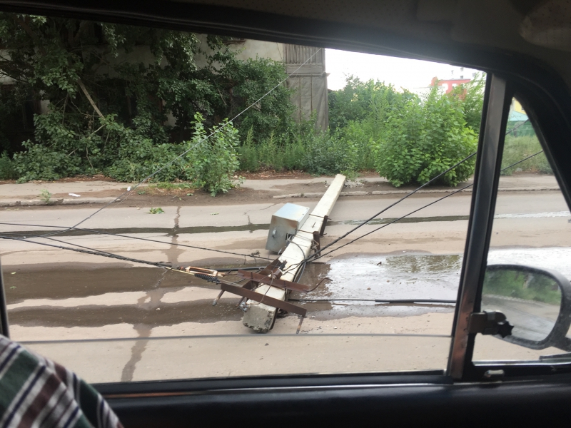 В Заводском районе на дорогу упал бетонный столб с электропроводами