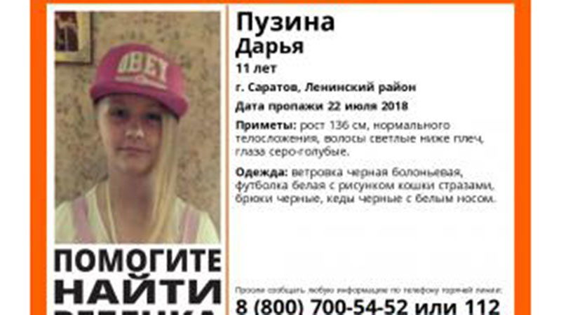 В Ленинском районе Саратова пропала 11-летняя Дария Пузина. Об этом сообщает поисковый отряд «Лиза Алерт».