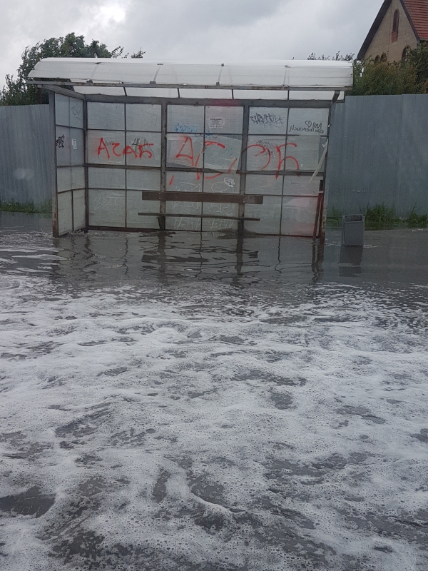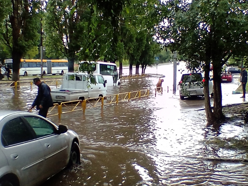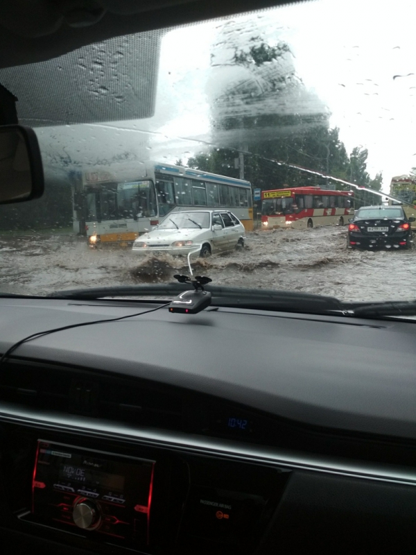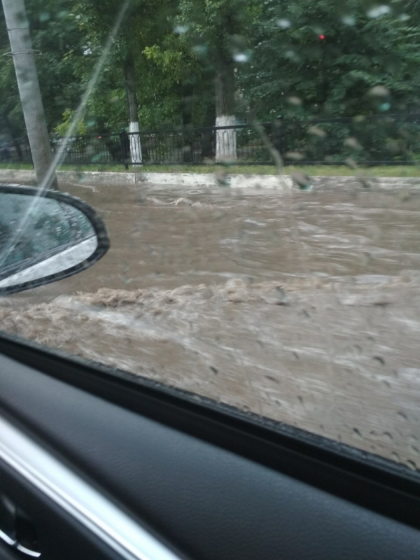 В ночь с субботы на воскресенье многим водителям пришлось выталкивать свои машины из огромных луж на проезжей части. Вода даже проникала в салон.