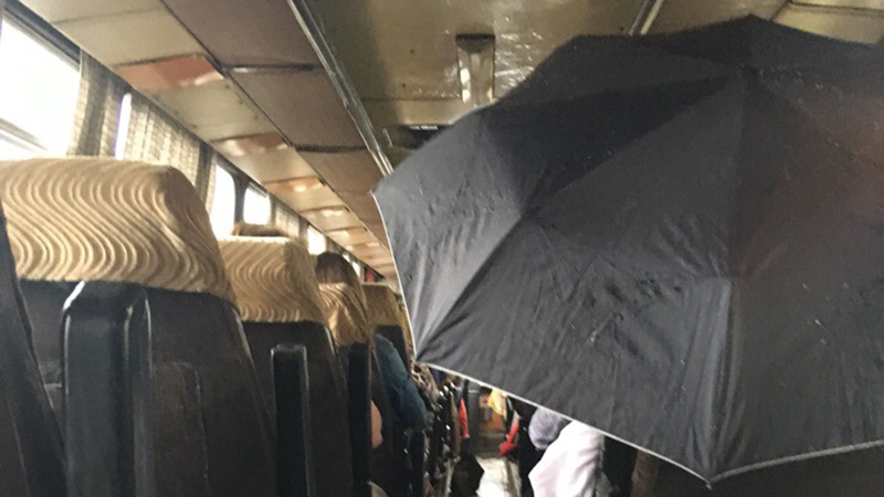 Пассажирам саратовского автобуса приходится ездить с раскрытым зонтом