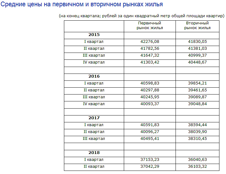 На вторичном рынке схожая ситуация, но падение цен было более равномерным. Во 2-м квартале было 36103 рубля, в 1-м квартале – 36040 рублей. При этом в 2017 году держалась цена чуть выше 38 тысяч рублей, а в 2016 – выше 39 тысяч. По сравнению с 2015 годом, вторичка подешевела на 5278 рублей.