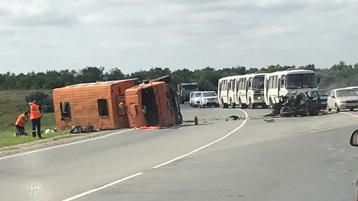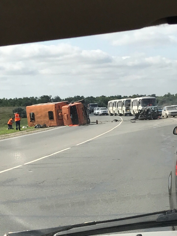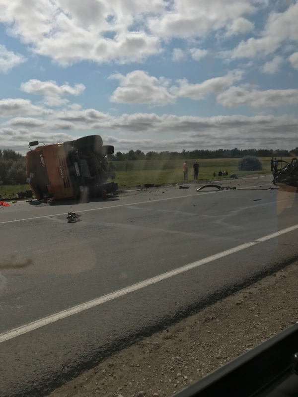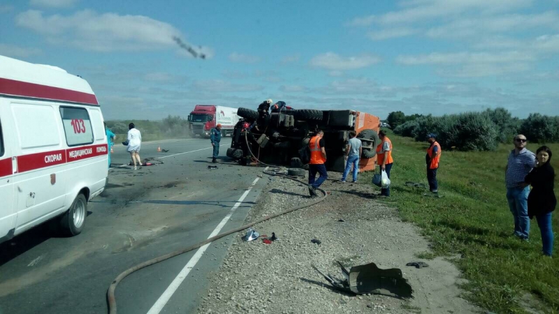Судя по опубликованным фотографиям очевидцев в группе «Саратов онлайн», грузовик перевозил людей. «КамАЗ» после столкновения перевернулся, а легковушка превратилась в груду металла.