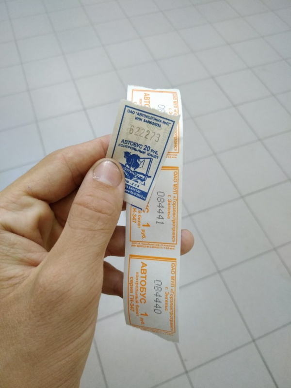 По наблюдению очевидцев, в энгельсских автобусах кондукторы оригинально выходят из ситуации и дают людям билеты номиналом в 20 рублей и три билета по одному рублю.