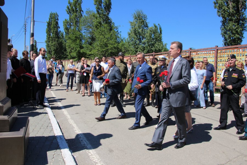 Перед мероприятием посол, заместитель главы по социальной сфере Наталья Обрежа, директор историко-музейного комплекса Борис Шинчук и другие минутой молчания почтили память и возложил цветы к памятнику-мемориалу саратовцам-участникам Первой мировой войны.