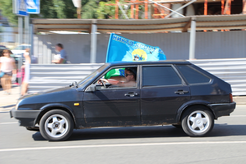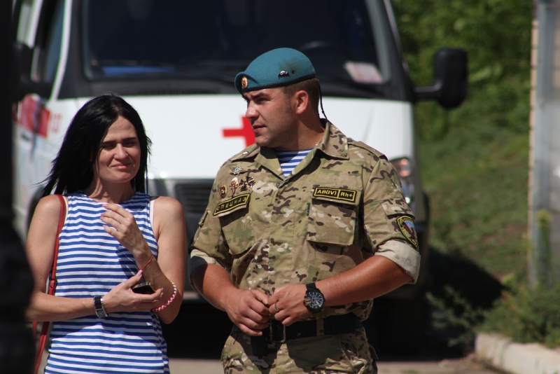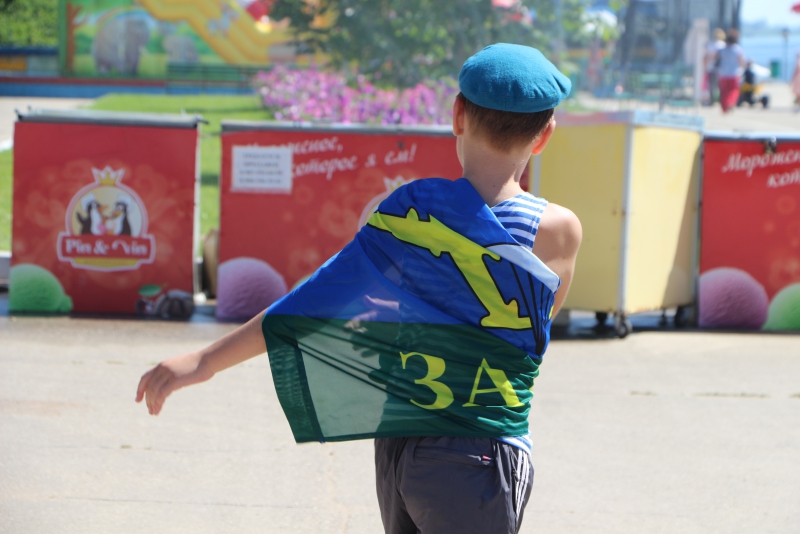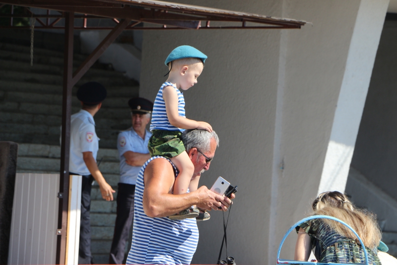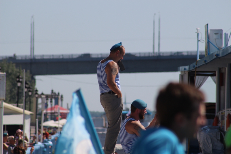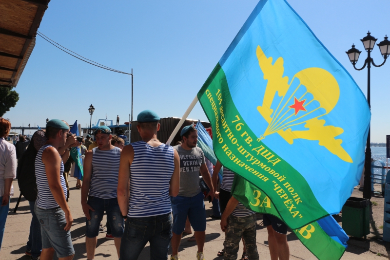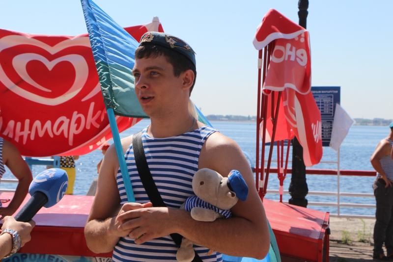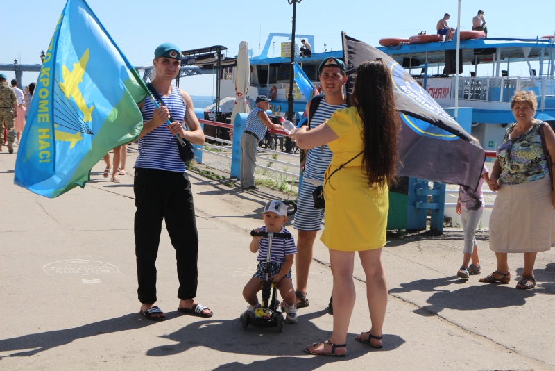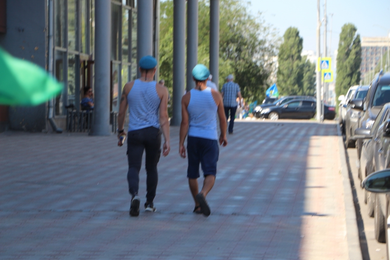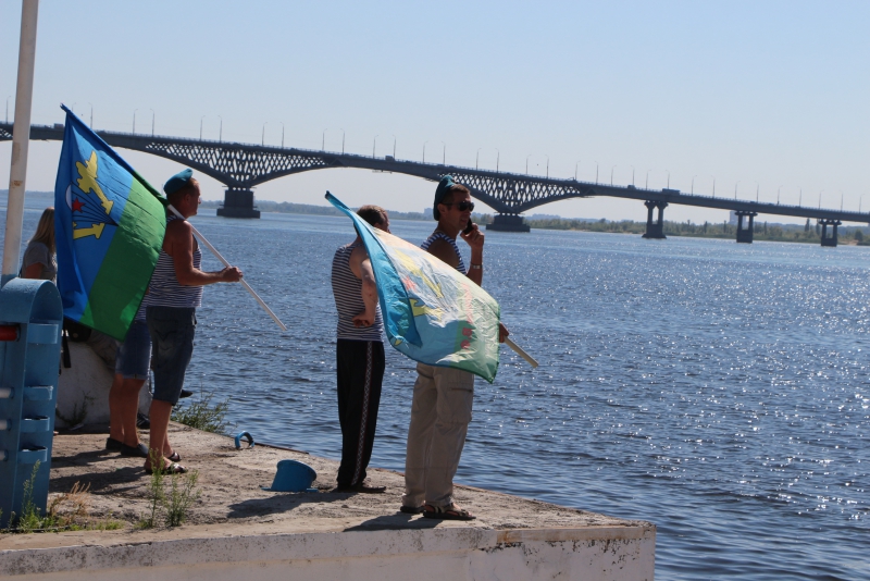 Многие мужчины пришли со своими детьми, нарядив их в тельняшки. Почти все обладатели голубых беретов принесли с собой флаги с девизом ВДВ «Никто, кроме нас». Саратовцы поздравляют друг друга с праздником независимо, знакомы они или нет.