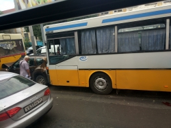 В Саратове автобусы зажали кроссовер с двух сторон и смяли его