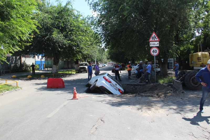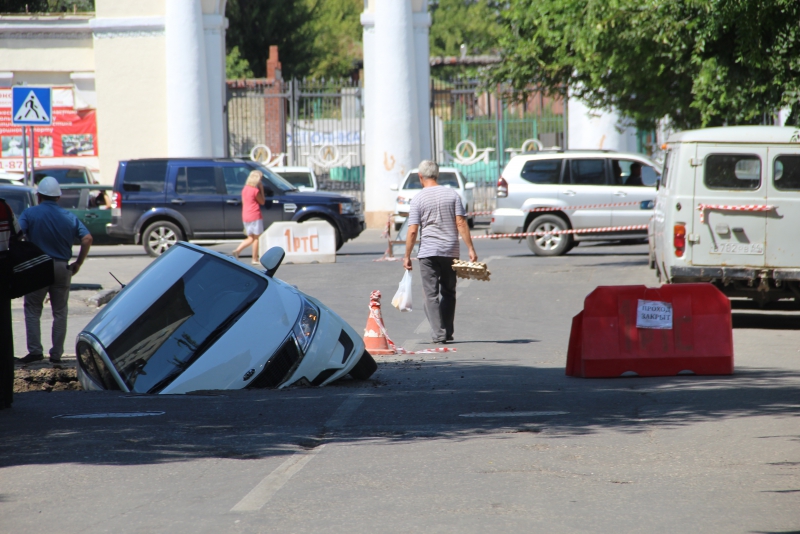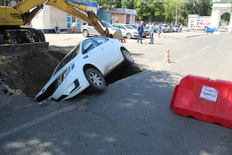 К счастью, пострадавших в аварии нет. Но они могли быть, если бы автоледи провалилась в яму чуть раньше. Несколько рабочих спускались к выкопанным трубам, потом поднялись наверх, и почти сразу машина провалилась.