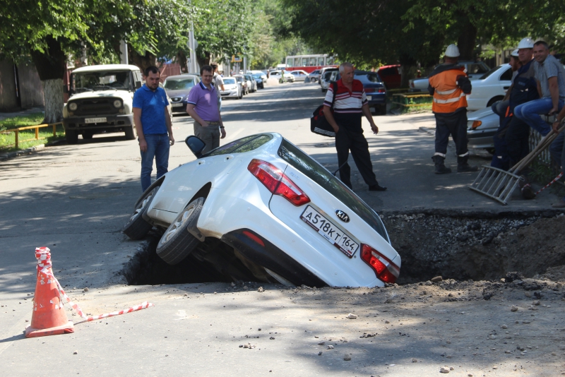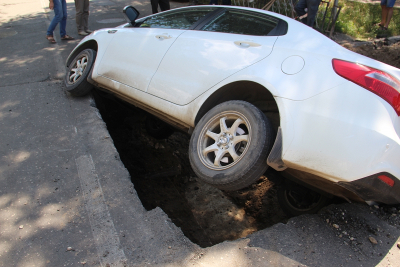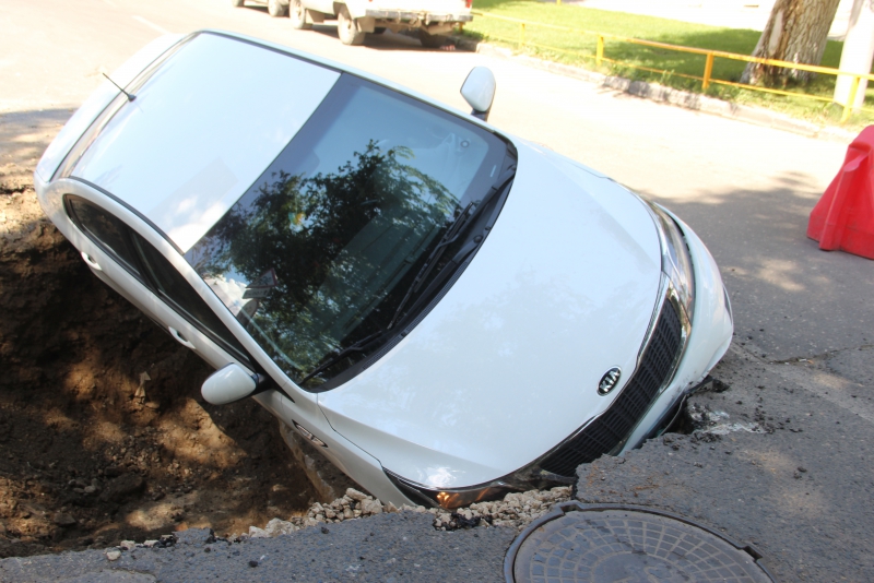 В центре Саратова автомобиль «Киа Рио» провалился на дороге через несколько секунд после того, как рабочие вылезли из ямы. Об этом корреспонденту «Четвертой Власти» рассказали представители коммунальной организации, которые вели на улице Слонова вскрышные работы.