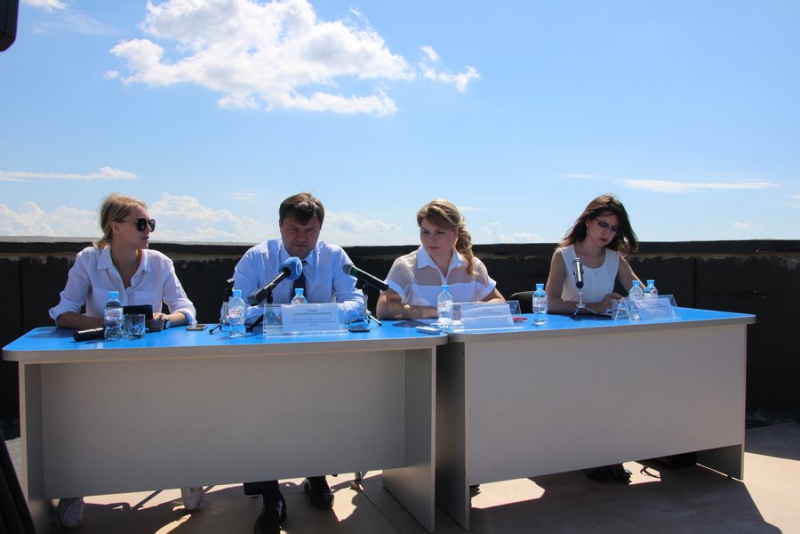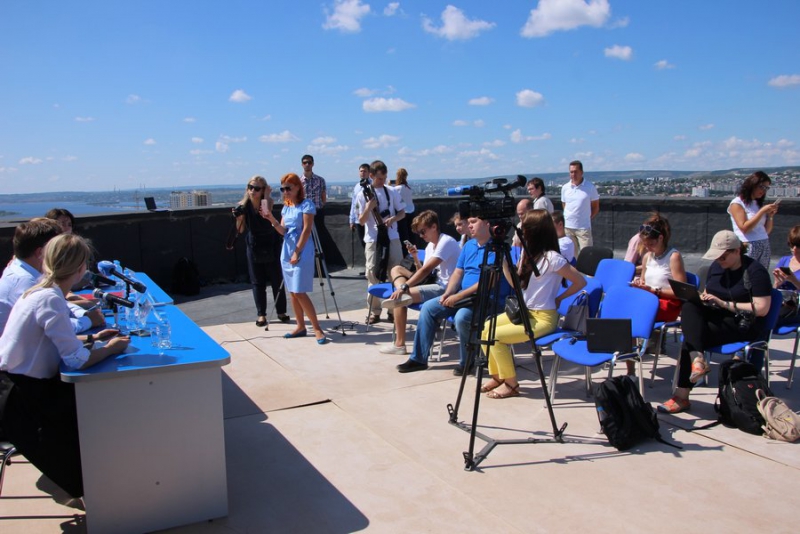 Ранее она провела для министра строительства и ЖКХ Саратовской области экскурсию по 25-этажке ЖК Ильинский, на крыше которой и прошла пресс-конференция.