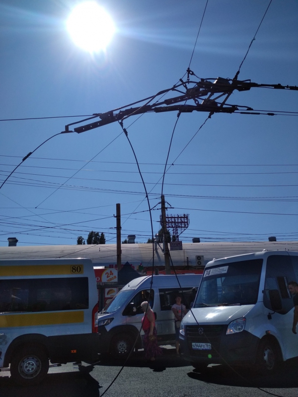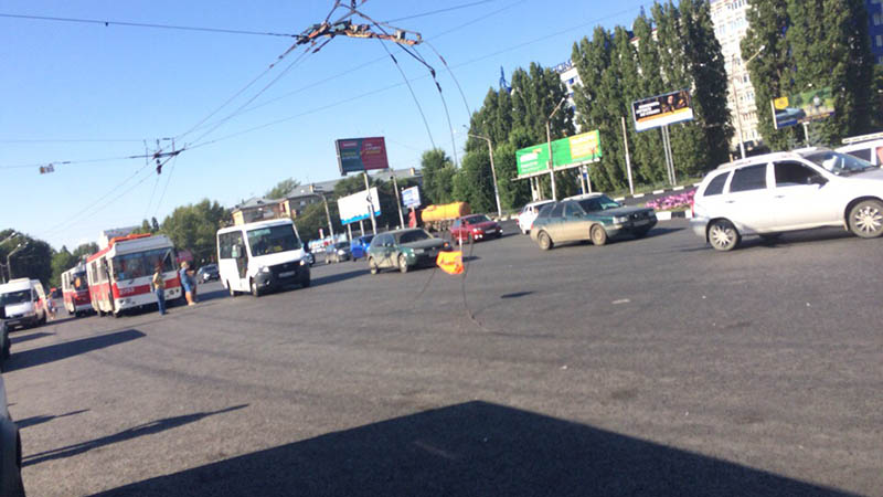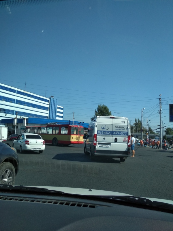 В Ленинском районе Саратова уже несколько часов наблюдаются автомобильные пробки. Затор связан с обрывом электропроводов, питающих троллейбусы на площади Ленина.