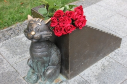Остальные артисты и работники культуры области также оставили розы и ромашки у подножия памятника Олегу Павловичу. Некоторые возложили цветы у монумента коту Матроскину.