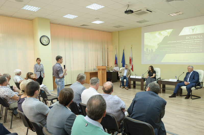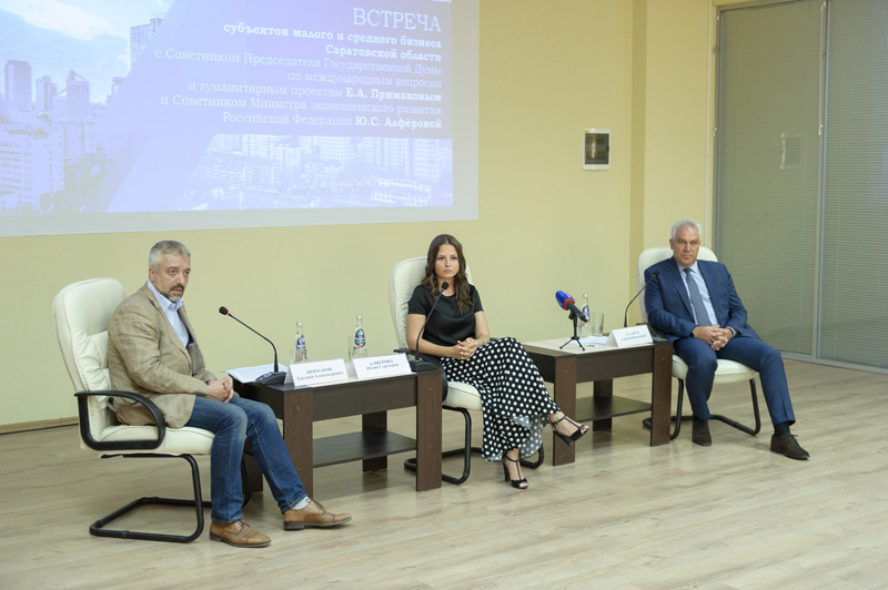 20 августа в Торгово-промышленной палате Саратовской области состоялась встреча советника министра экономического развития РФ Юлии Алферовой и советника председателя Госдумы РФ по международным вопросам и гуманитарным проектам Евгения Примакова с бизнес-сообществом.