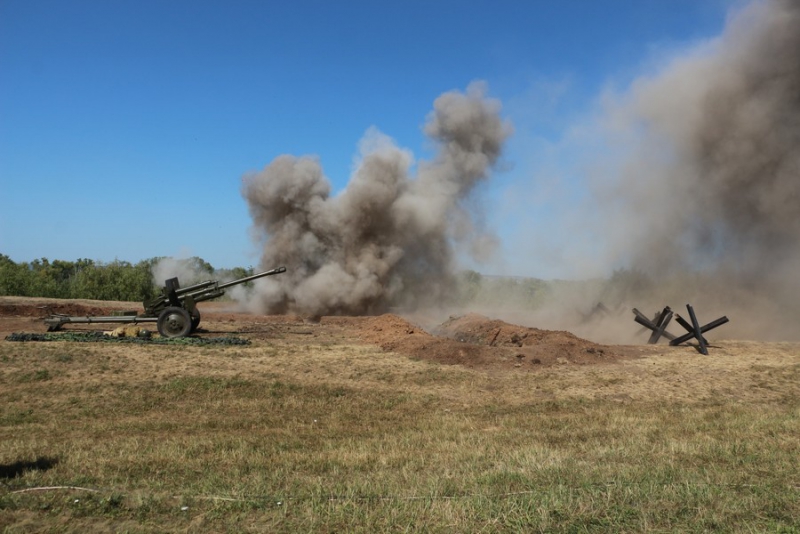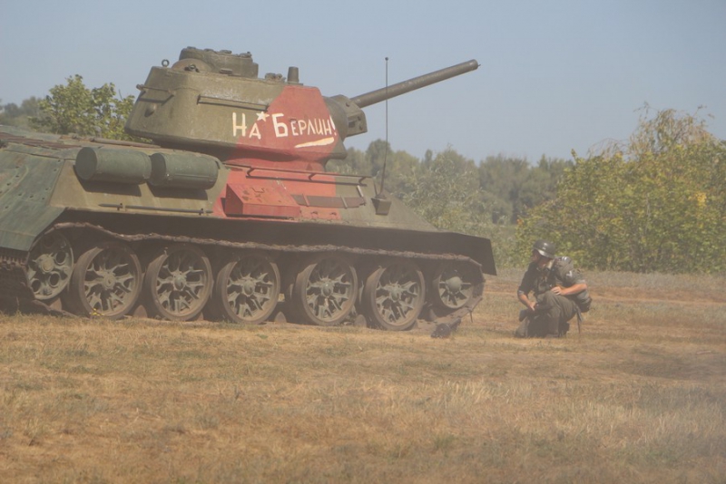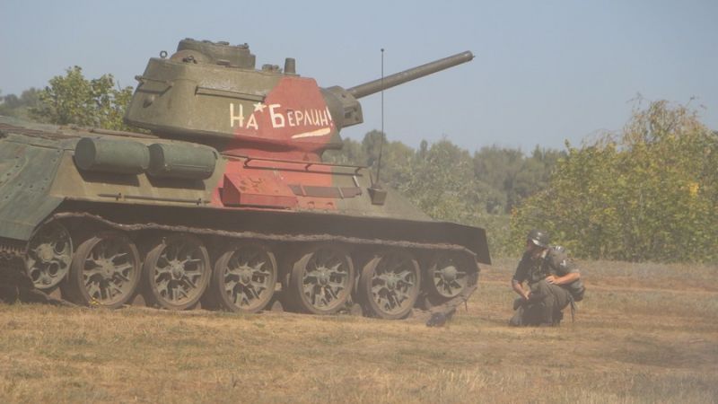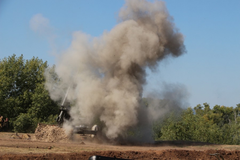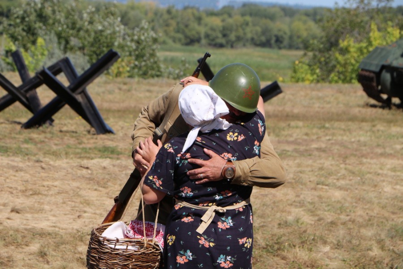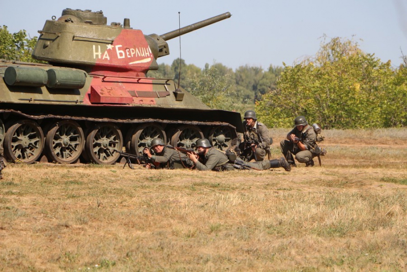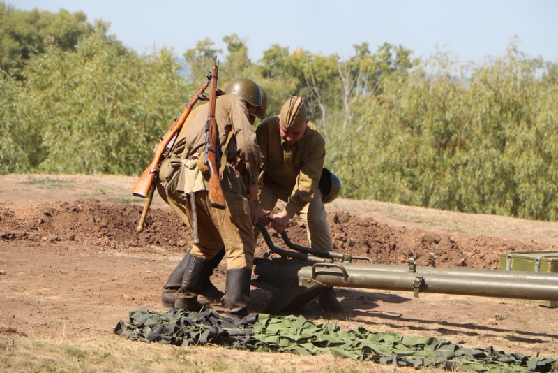 В Энгельсе парк военной техники открыли реконструкцией боя под Сталинградом. Видео